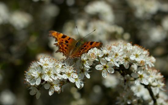 Обои Бабочка на цветущем дереве