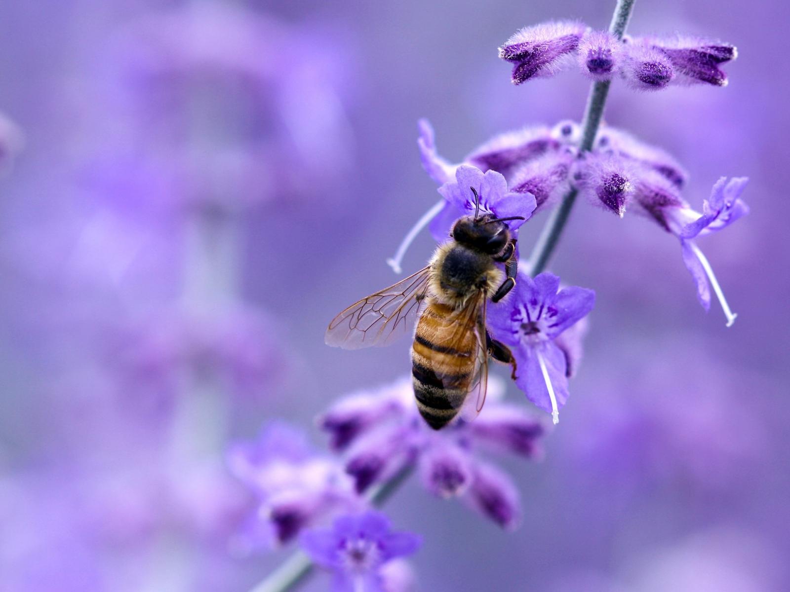 Обои Пчела на синем цветке
