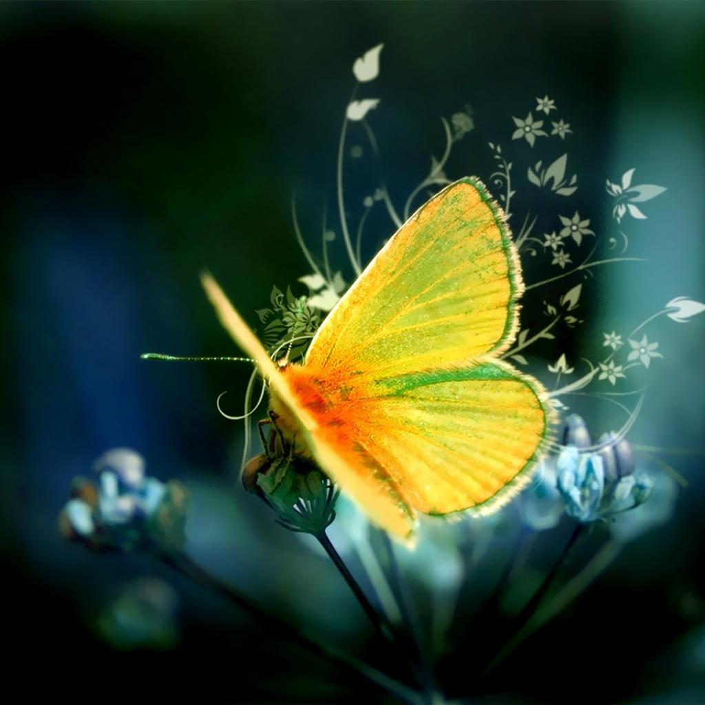Обои Желтая бабочка на цветке