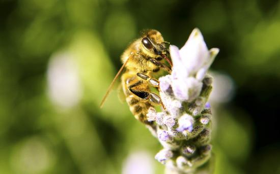 Обои Пчела с цветка собирает мед