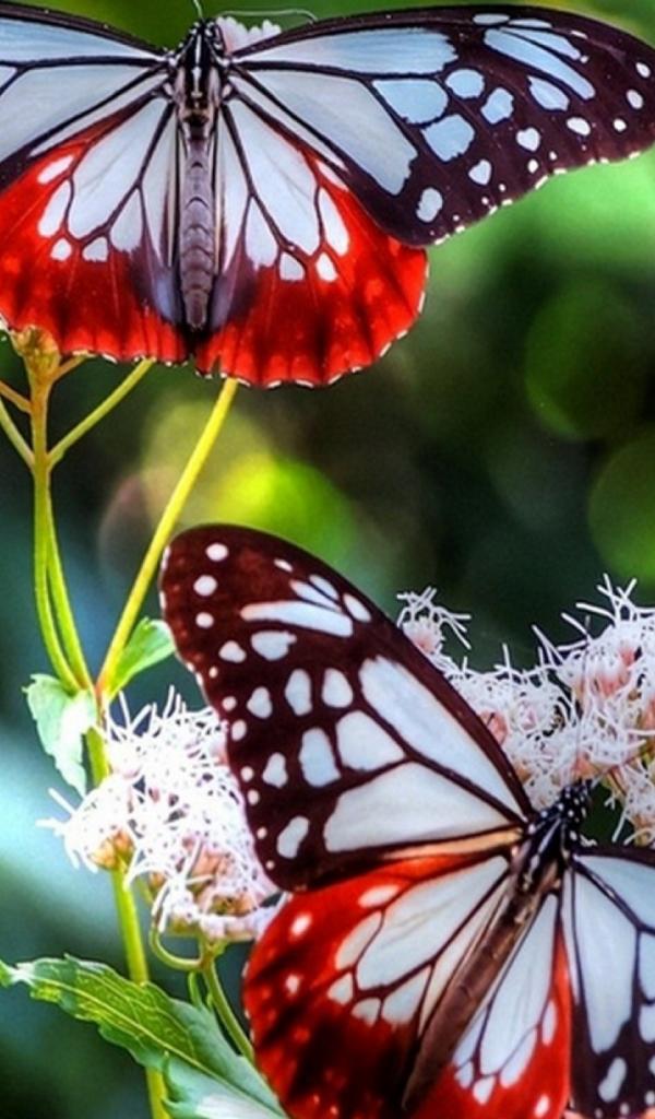 Обои Красно синие бабочки