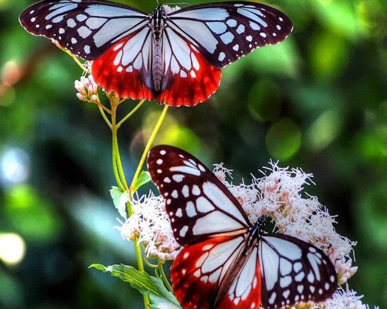 Обои Красно синие бабочки