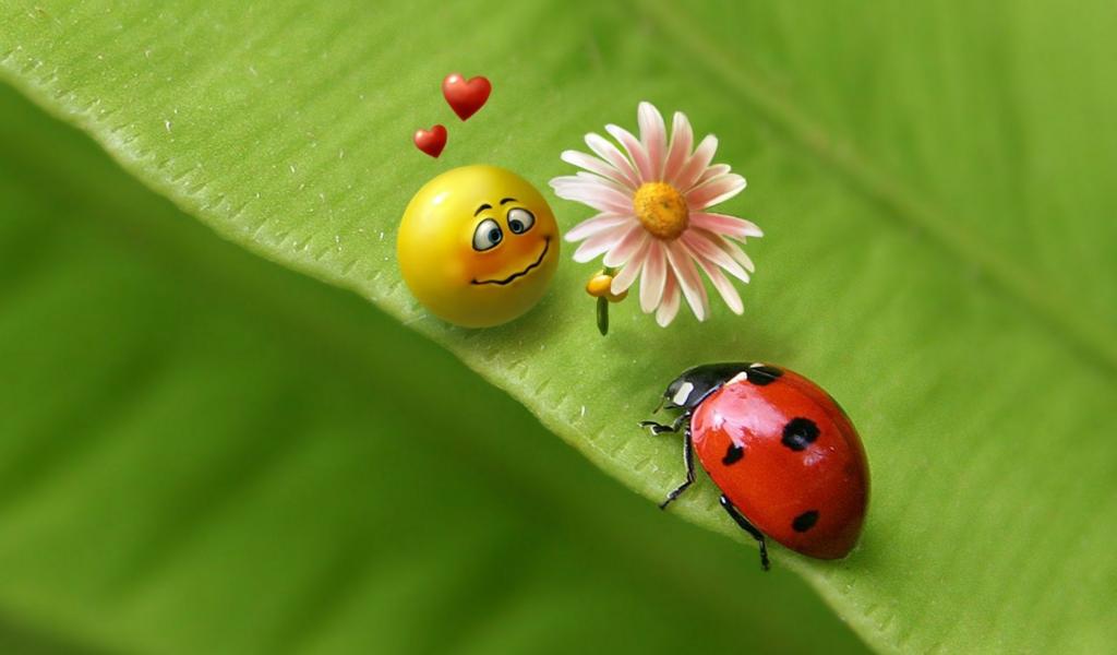 Обои Смайлик и божья коровка