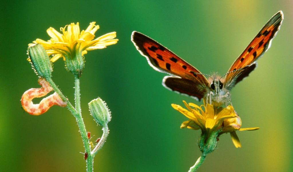 » Обои Бабочка и гусеница