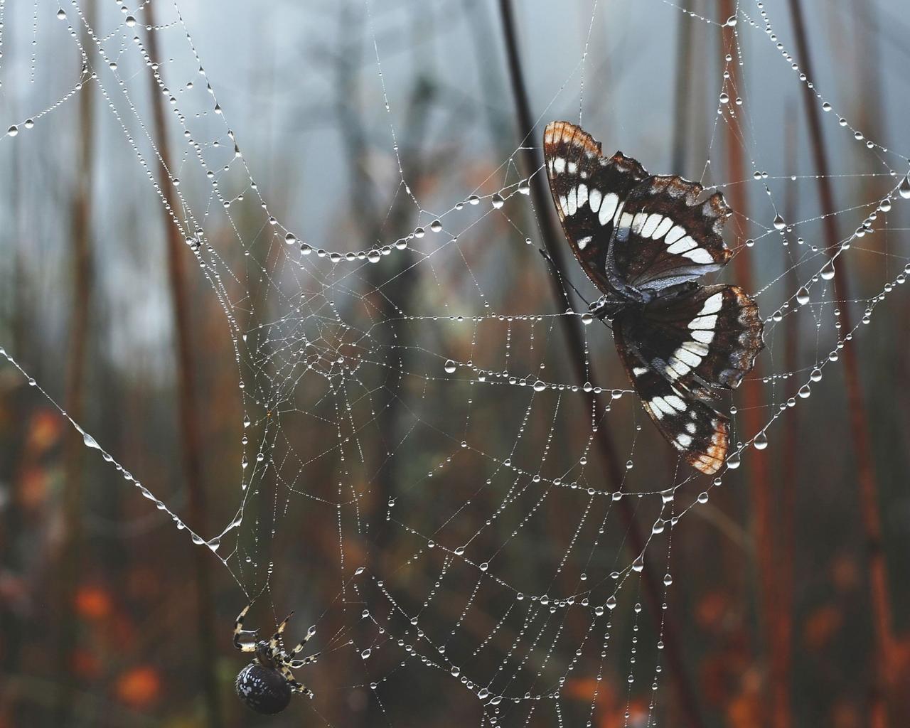 Обои Бабочка в паутине