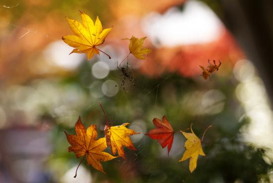 » Обои Листья, паук, паутина, Макро