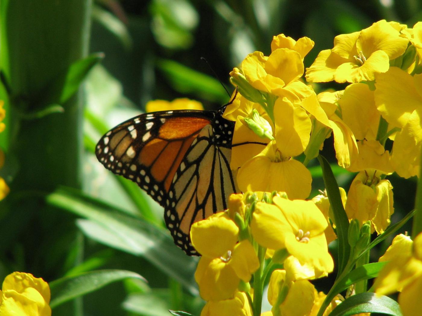 Обои Бабочка и желтые цветы