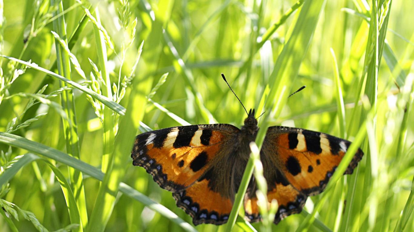 Обои Бабочка в траве