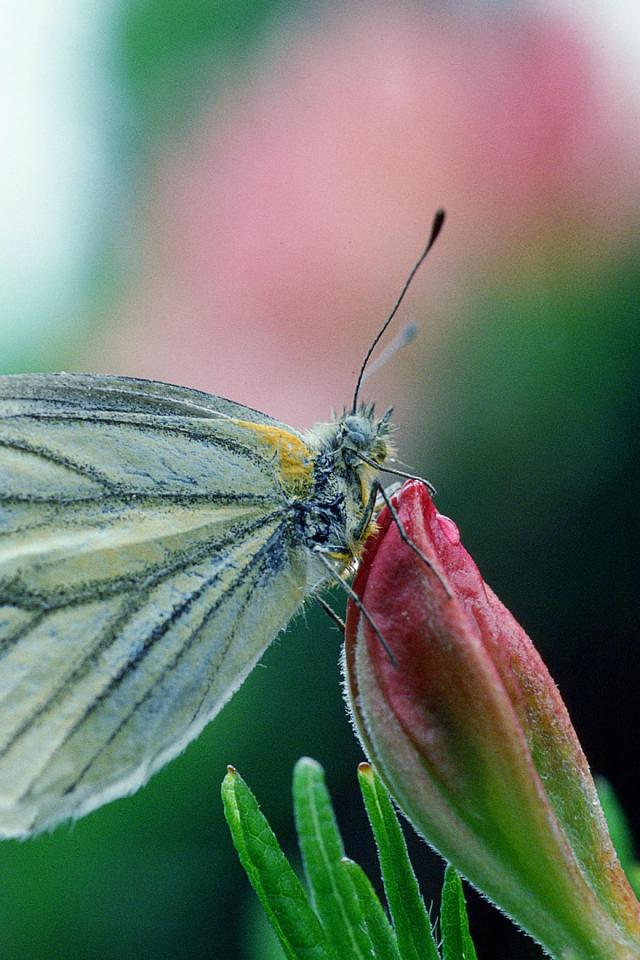 Обои Бабочка у цветка