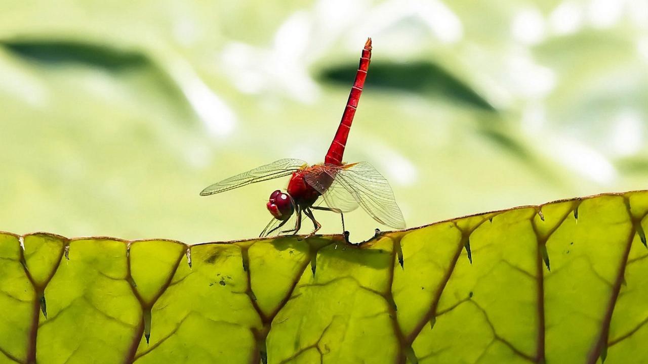 Обои Стрекоза на листьях