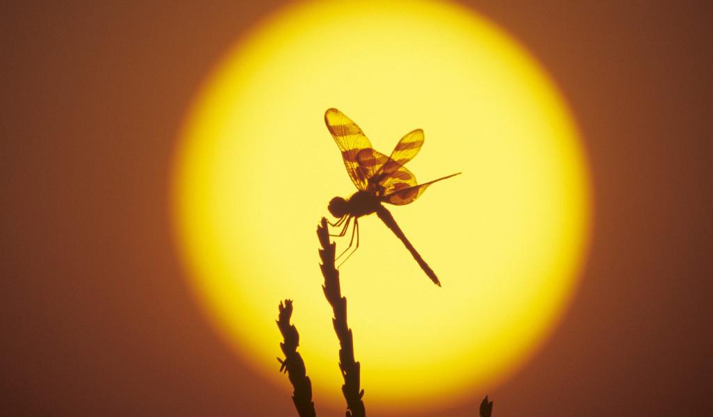 Обои Стрекоза на фоне солнца
