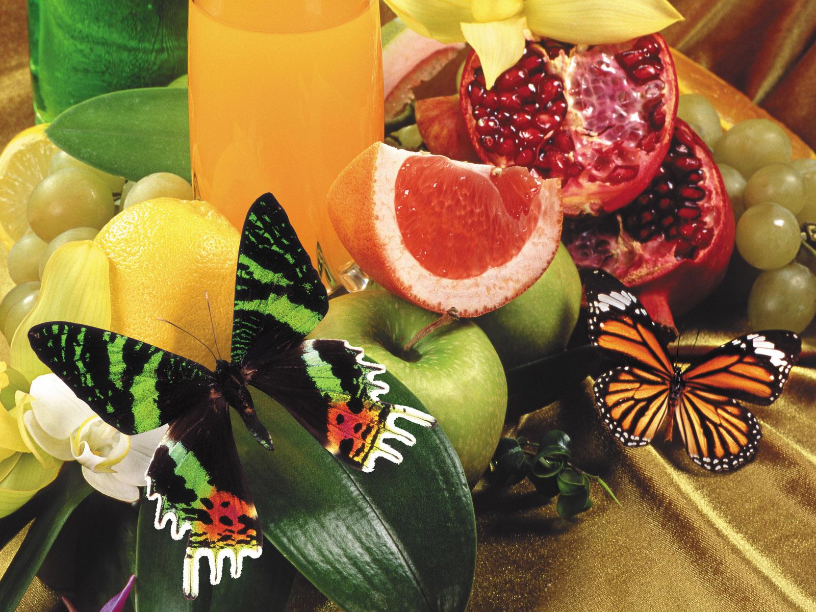» Обои Маленькая бабочка на фруктах