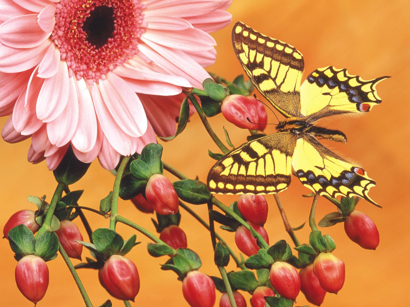 » Обои Бабочка на цветочных бутонах