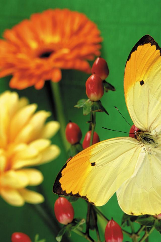 Обои Желтая бабочка на цветке