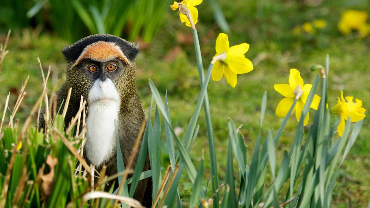 Обои Обезьяна среди цветов