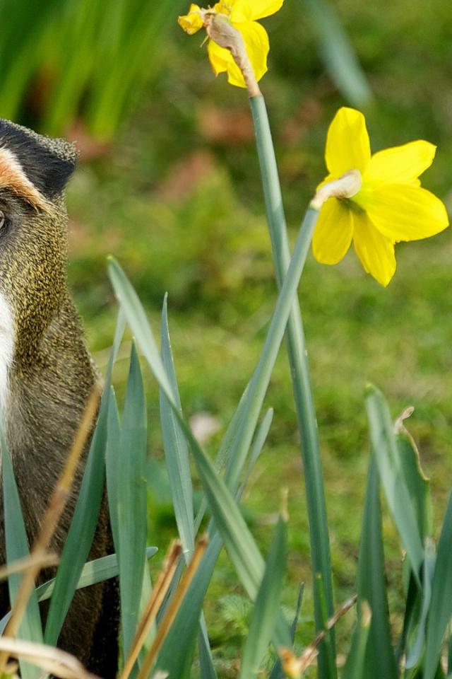 Обои Обезьяна среди цветов