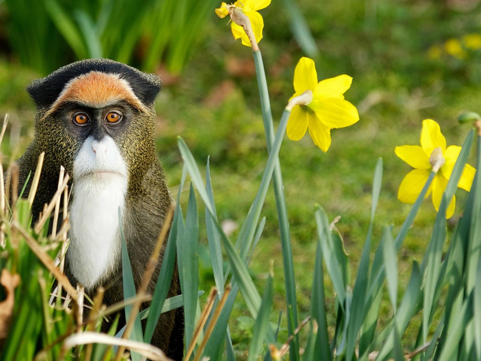 Обои Обезьяна среди цветов