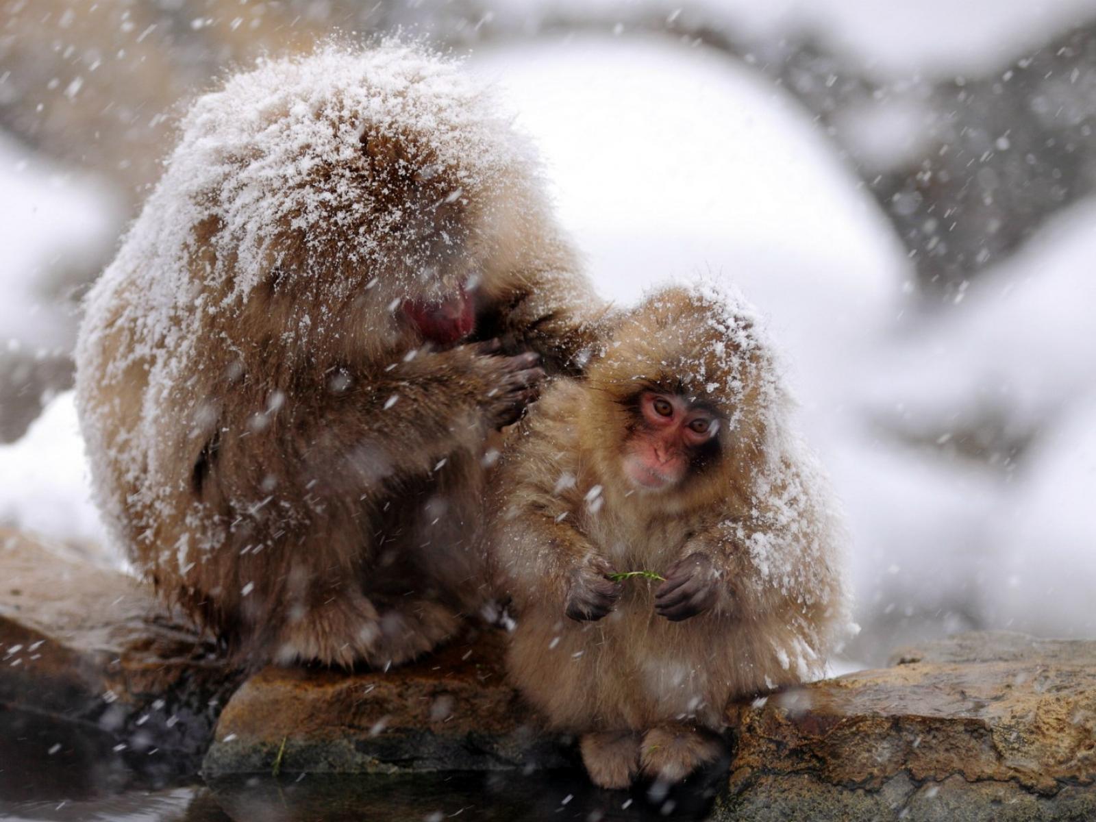 Обои Японские макаки на снегу