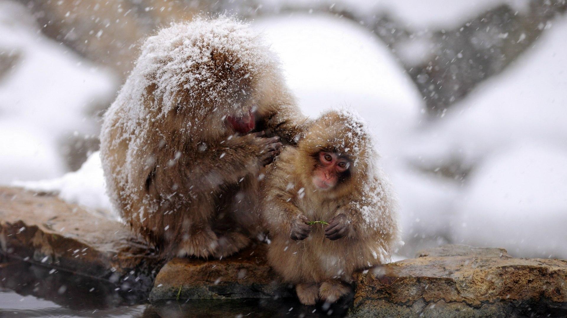 Обои Японские макаки на снегу