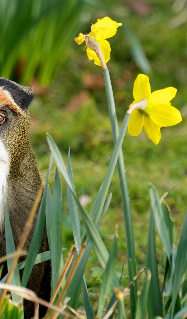 Обои Обезьяна в желтых цветках