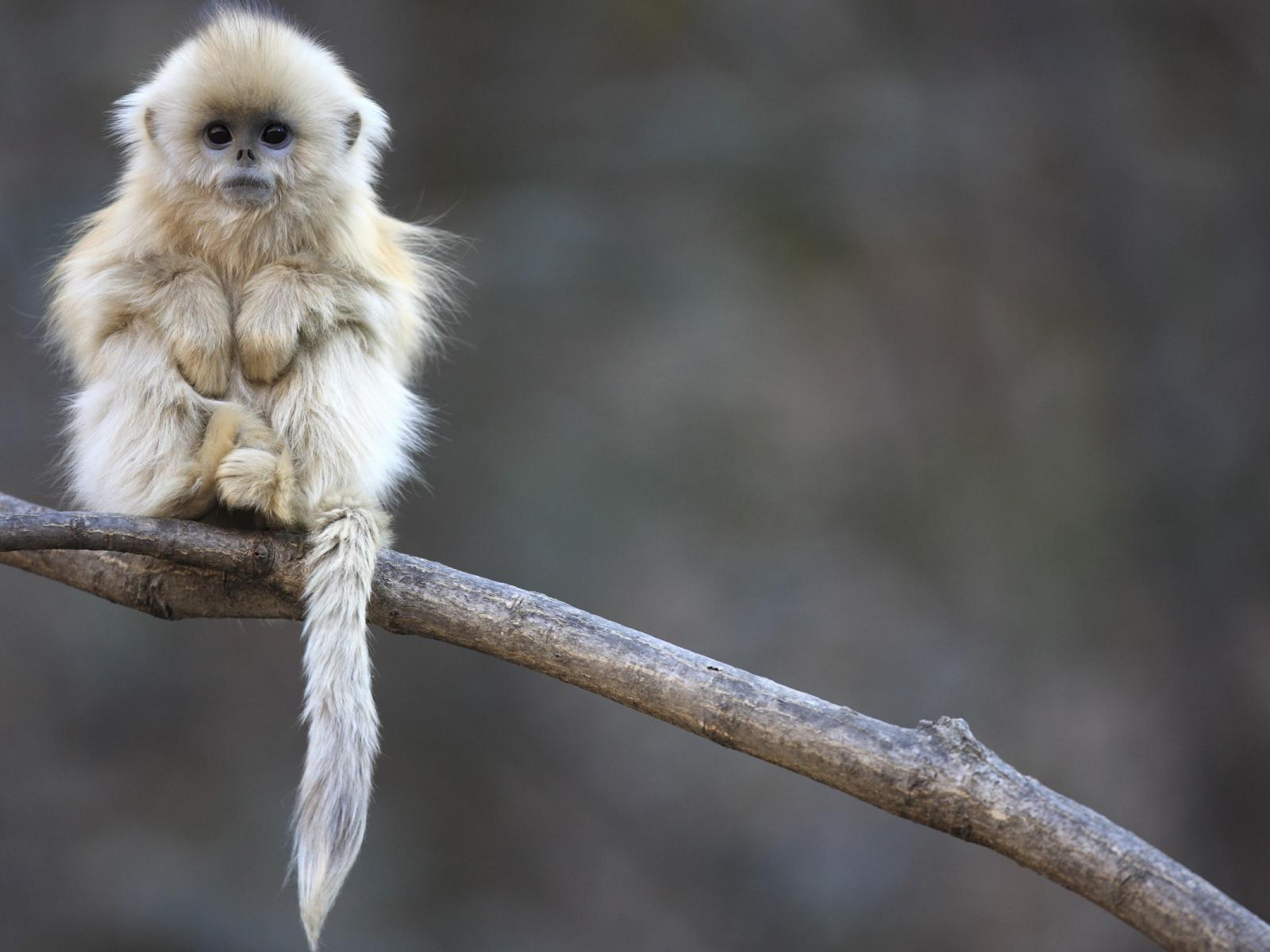 Обои Маленькая обезьянка сидит на ветке