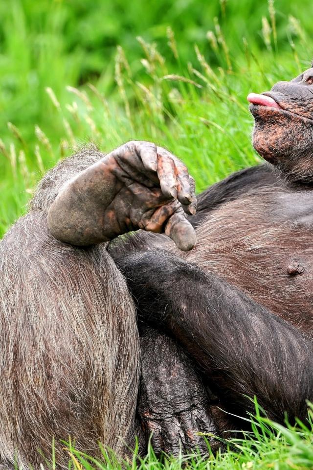 Обои Обезьяна на траве
