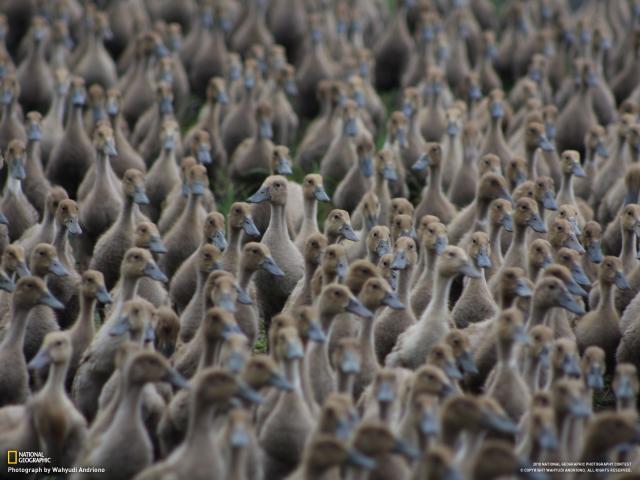 Обои Стая диких уток на земле