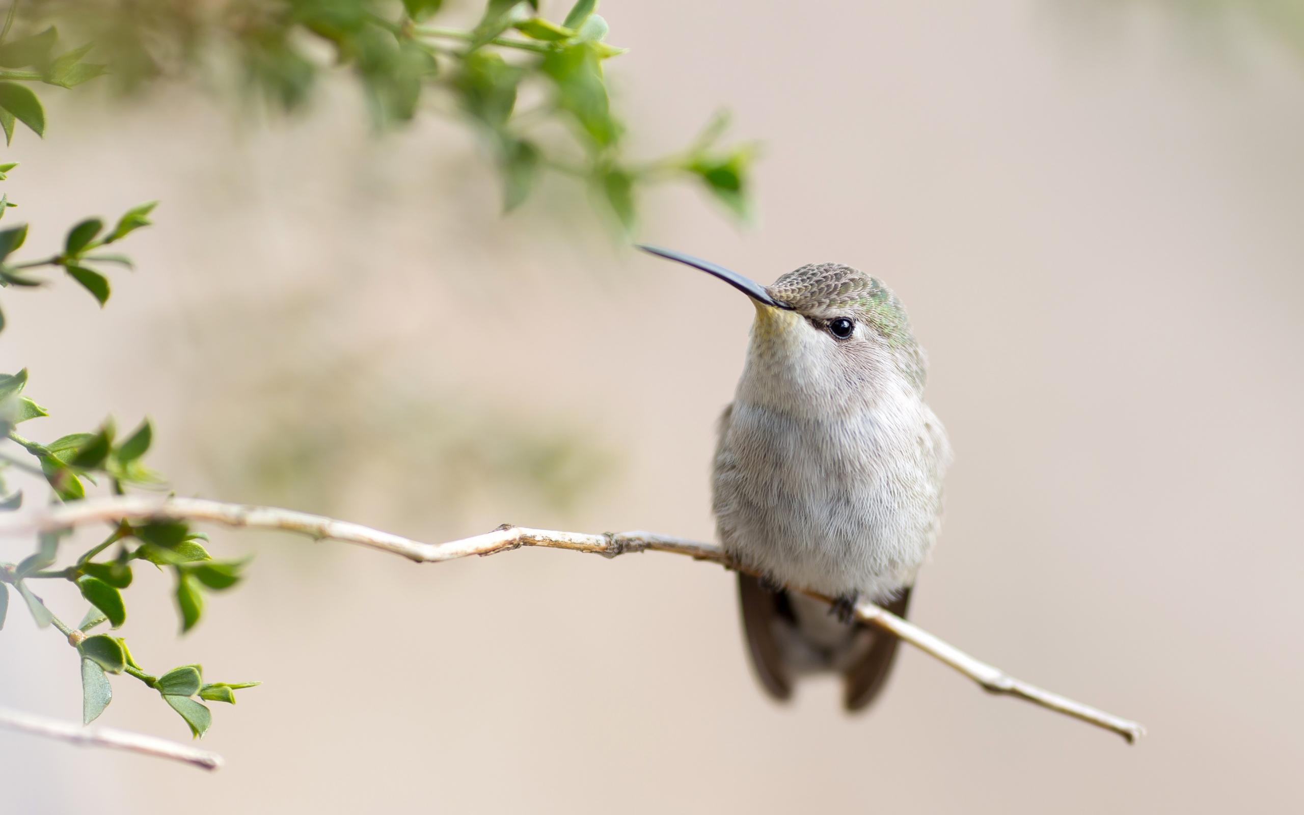 Обои Милая серая колибри на ветке