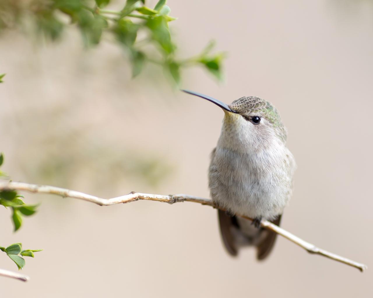 Обои Милая серая колибри на ветке