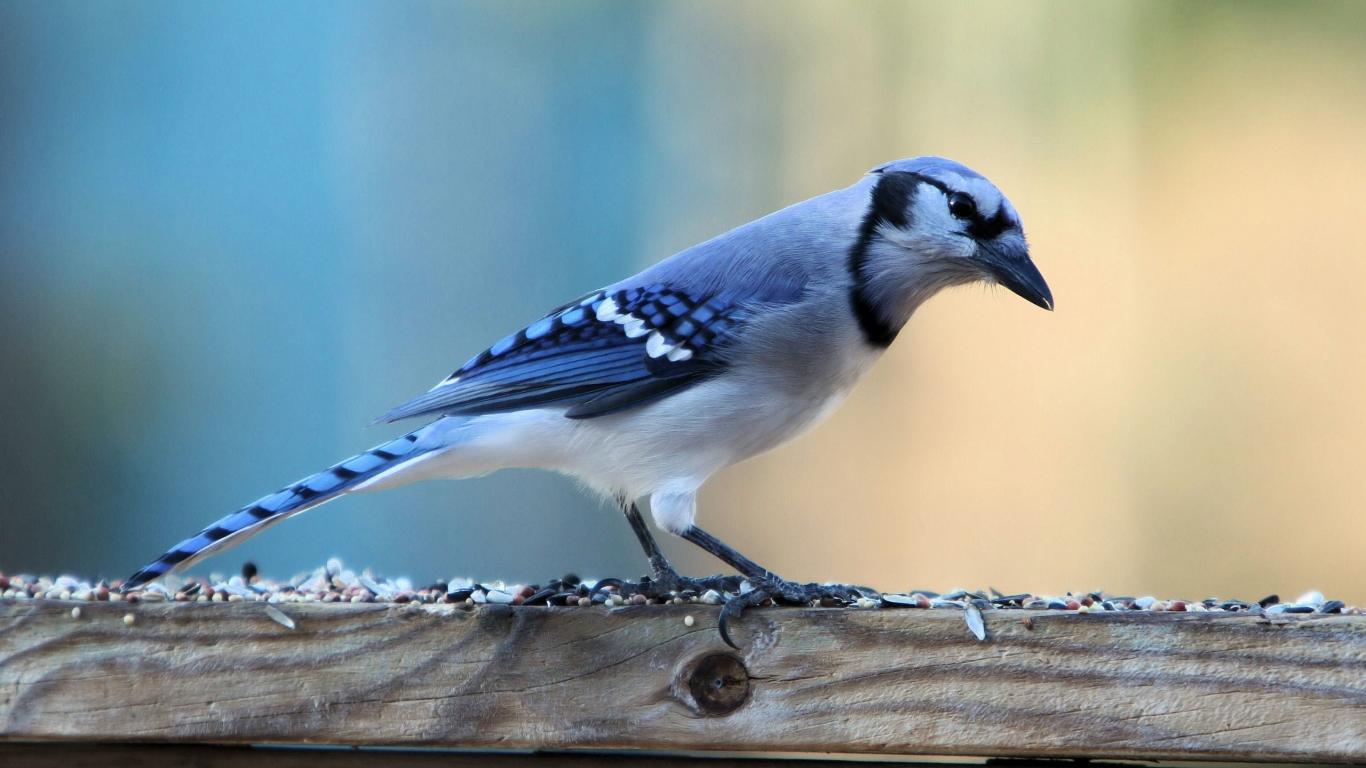 Обои Красивая птица с голубыми перьями на доске
