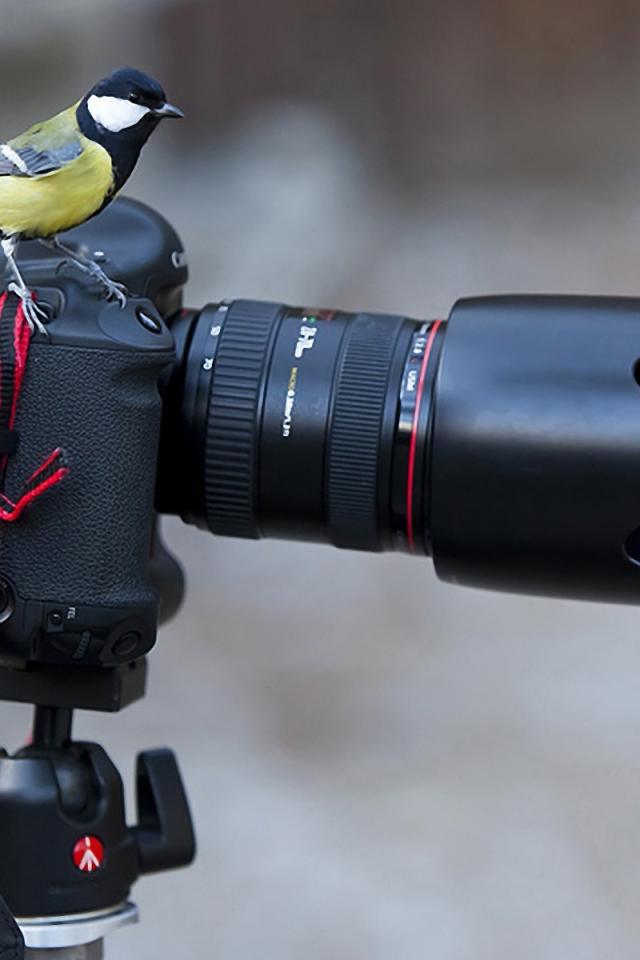 Обои Две синицы на фотоаппарате