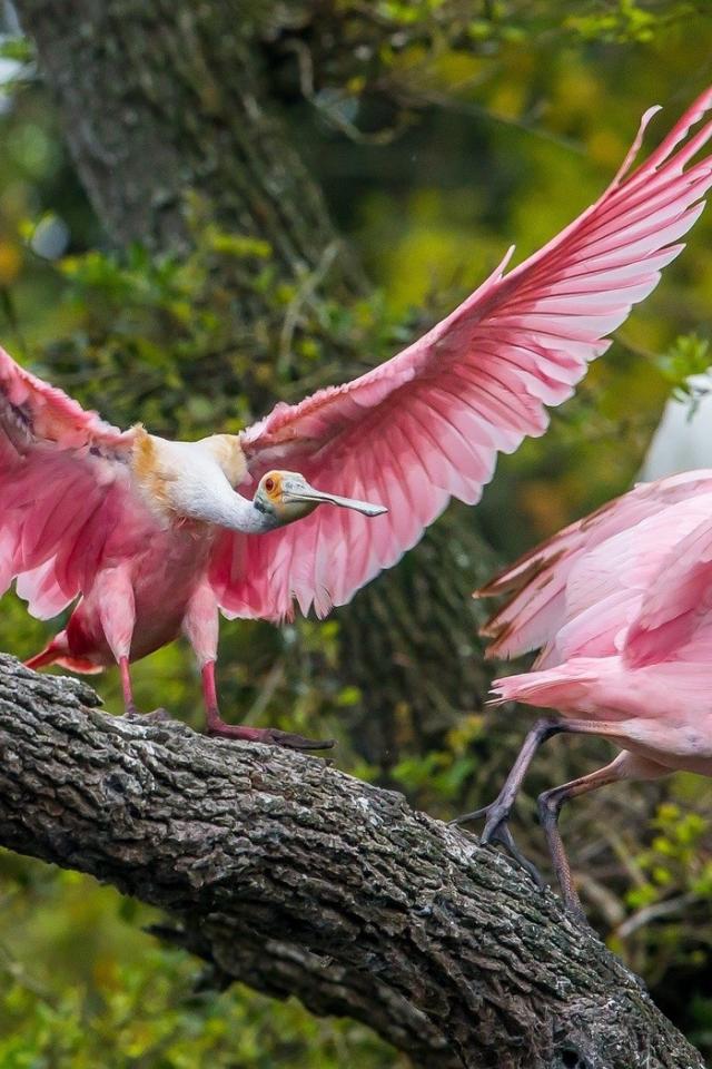 Обои Две розовые птицы на дереве