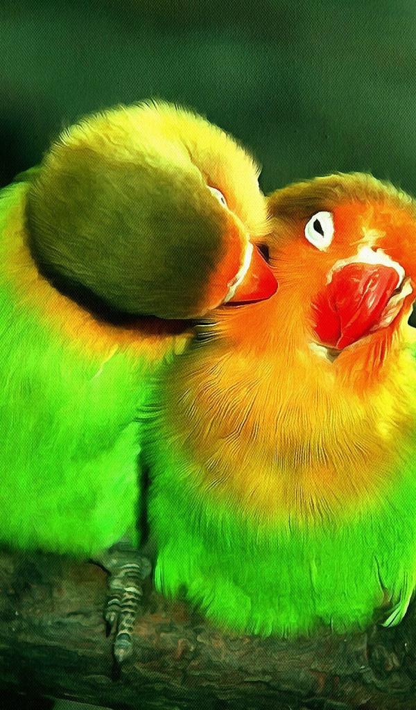 Обои Два милых зеленых попугая на ветке дерева
