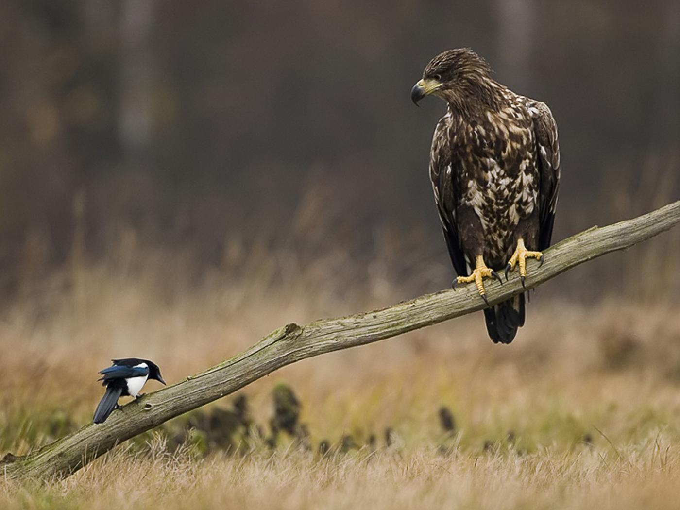 Обои Орел и сорока на палке