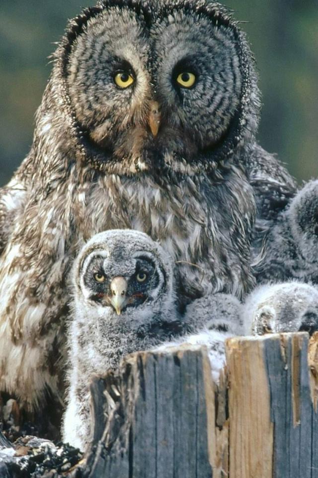 Обои Сова охраняет своих детей