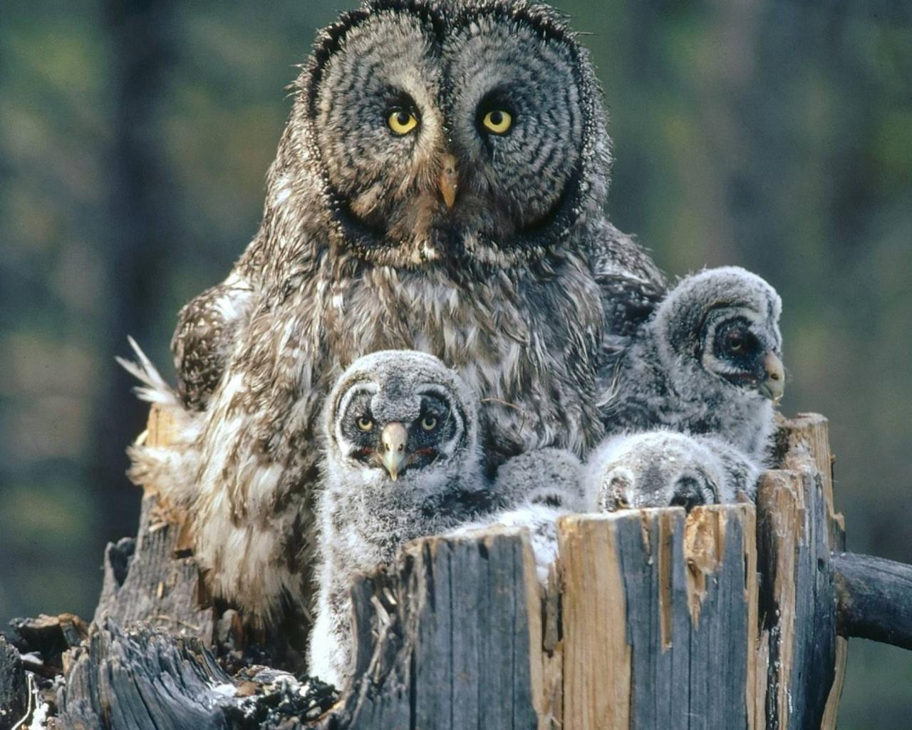 Обои Сова охраняет своих детей