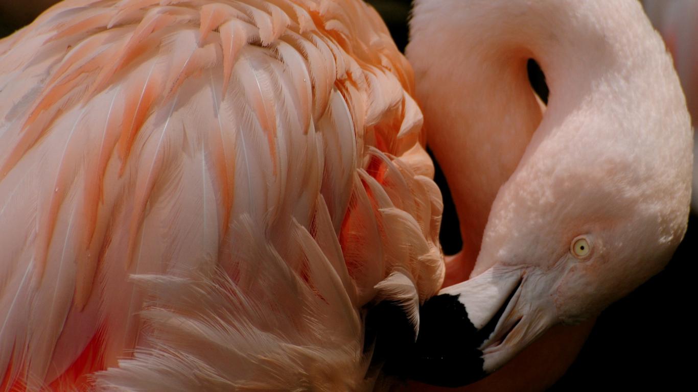 Обои Розовый фламинго чистит перья