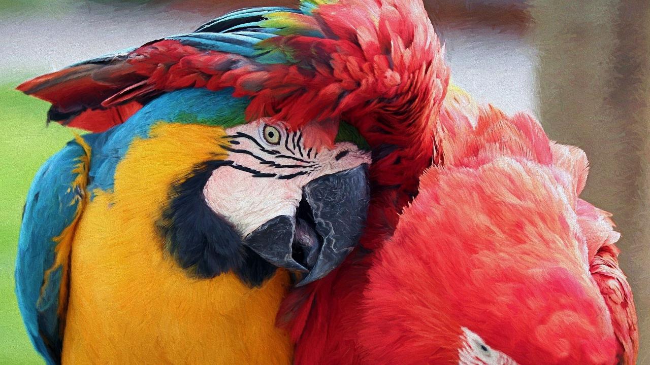 Обои Красочный попугай под крылом другого попугая