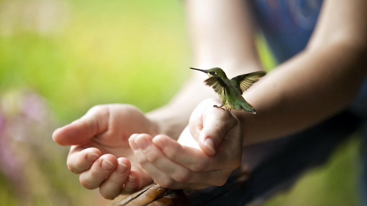 Обои Крошечная колибри на руке