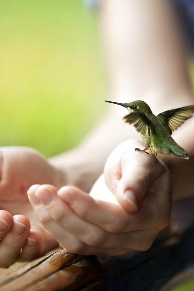 Обои Крошечная колибри на руке
