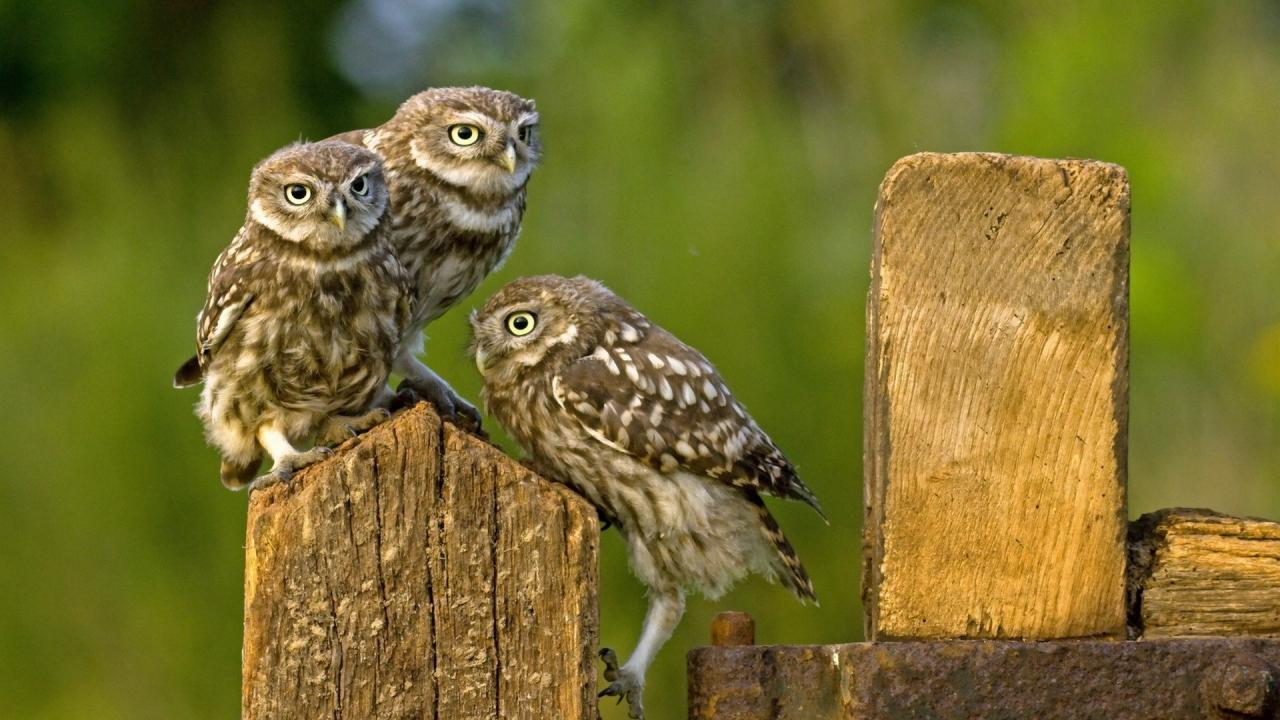 Обои Три совы на деревянном заборе