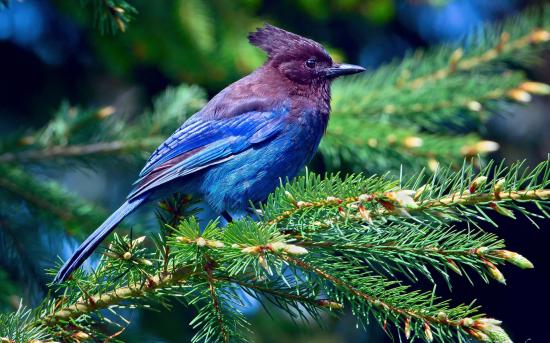 Обои Синяя птица на хвойной ветке
