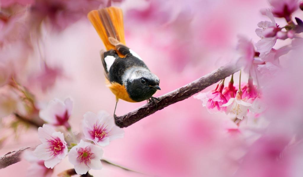 Обои Поющая птица с оранжевым хвостом