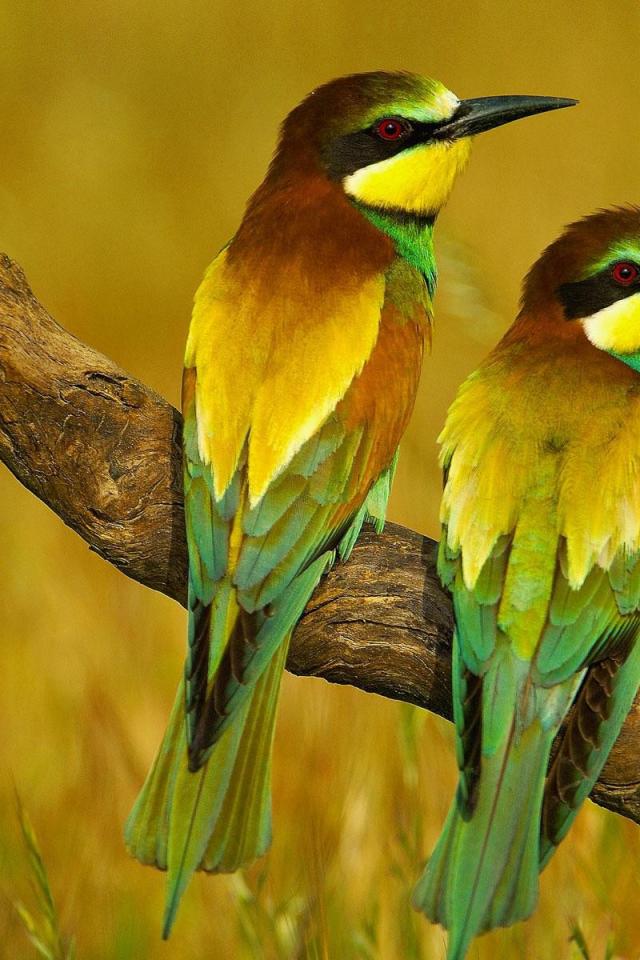 Обои Пара щурков на засохшей коряге