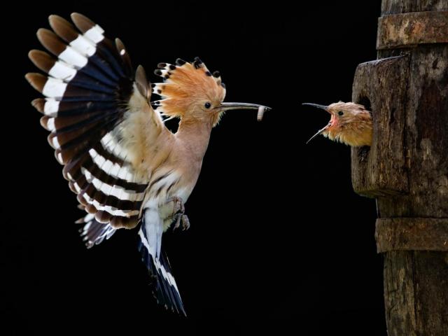 Обои Дрозд кормит своего птенца