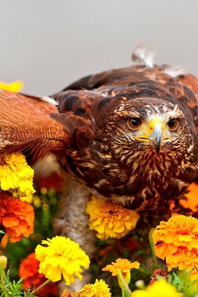 Обои Ястреб сел на цветы
