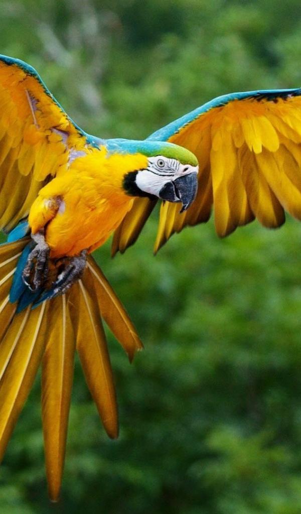 Обои Размах крыльев желтого попугая
