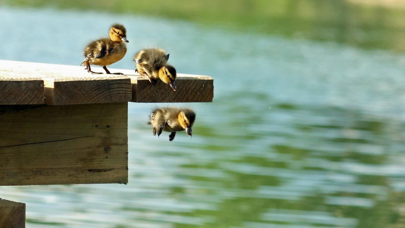 Обои Утята учатся плавать