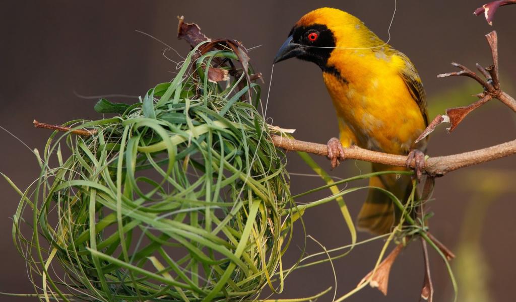 Обои Птица вьет гнездо