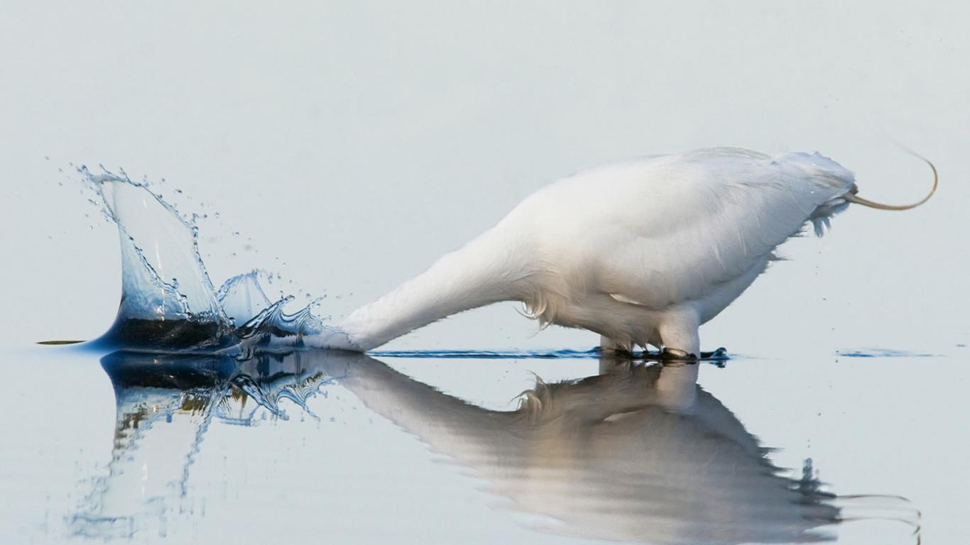 Обои Белый гусь купается